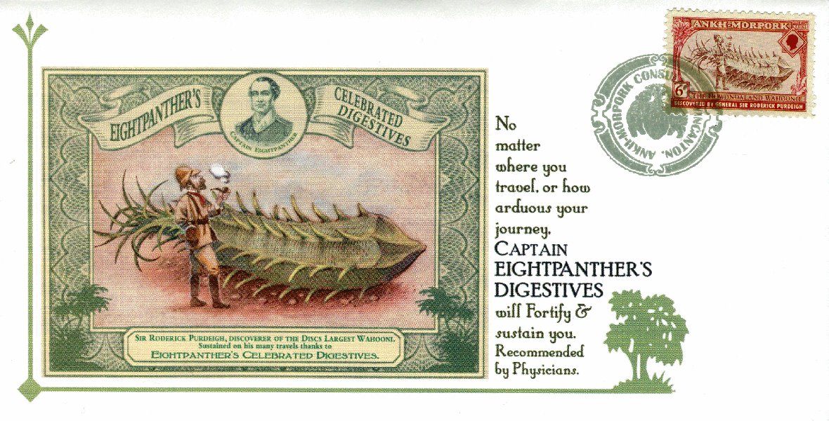Captain Eightpanther`s Digestives are famous amongst travelers for being quite indigestible. The cover is notable for the Smoking Wahoonie stamp used