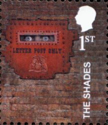 The Shades Post Office Box Wincanton label The first Penny Farthing Unseen University issued as a response to the similar stamp showing the Great Hall. Royal Mail stamps,