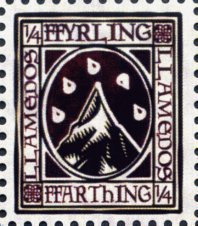 The first Llamedos (mae hi wastad yn pistyllia) Ffyrling stamp
