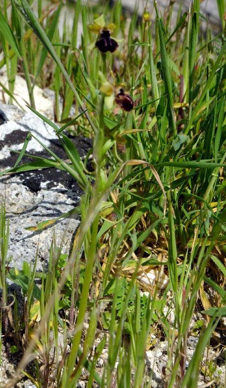 The third species found was nearby; Ophrys sicula, regarded by some as O. lutea minor. Despite the species name this is not limited to growing in Sicily.