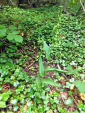 Driving back from the Cotswolds it is a short detour to the Violet Helleborines here. Hopefully they are now in flower. Unfortunately they are not, either on the roadside site or in the woodlands. They do show some development with the large woodland plant now fully erect. The possible var rosea is definitely not, but does at least have some good violet leaf colouration. There are other recent records from the area, scattered over a few square miles. I am now thinking that these plants are remnants of a large but sparse colony from pre-industrial days. Perhaps then the population density was greater, but the whole area should perhaps be regarded as one large colony, albeit widely dispersed now. Next year perhaps a look for others in the area armed with BSBI information.
