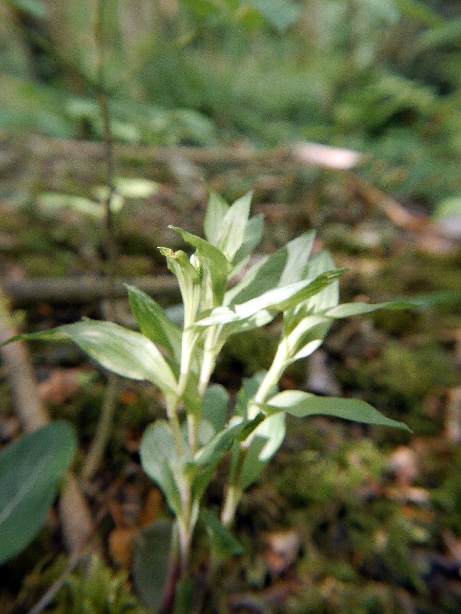 Arrived here not expecting too much, but at least it is somewhere different to have a walk whilst the Covid restrictions are still in place. No sign of any Bee Orchids, but the clump of Dune Helleborine that was three flower spikes a couple of years ago is now seven. I will be back to see these again soon. No sign either of the large Common twayblades I usually visit, but Common Spotted and Pyramidal Orchids are just waking up. The Green-flowered Helleborines are also coming along nicely, but for me the star of the day is another Epipactis plant. It stands out from the GFH growing nearby, and significantly the main leaves rotate around the stem rather than in opposite pairs. This marks it out as a potential Broad-leaved Helleborine, a species I have never seen here before.