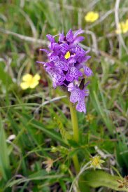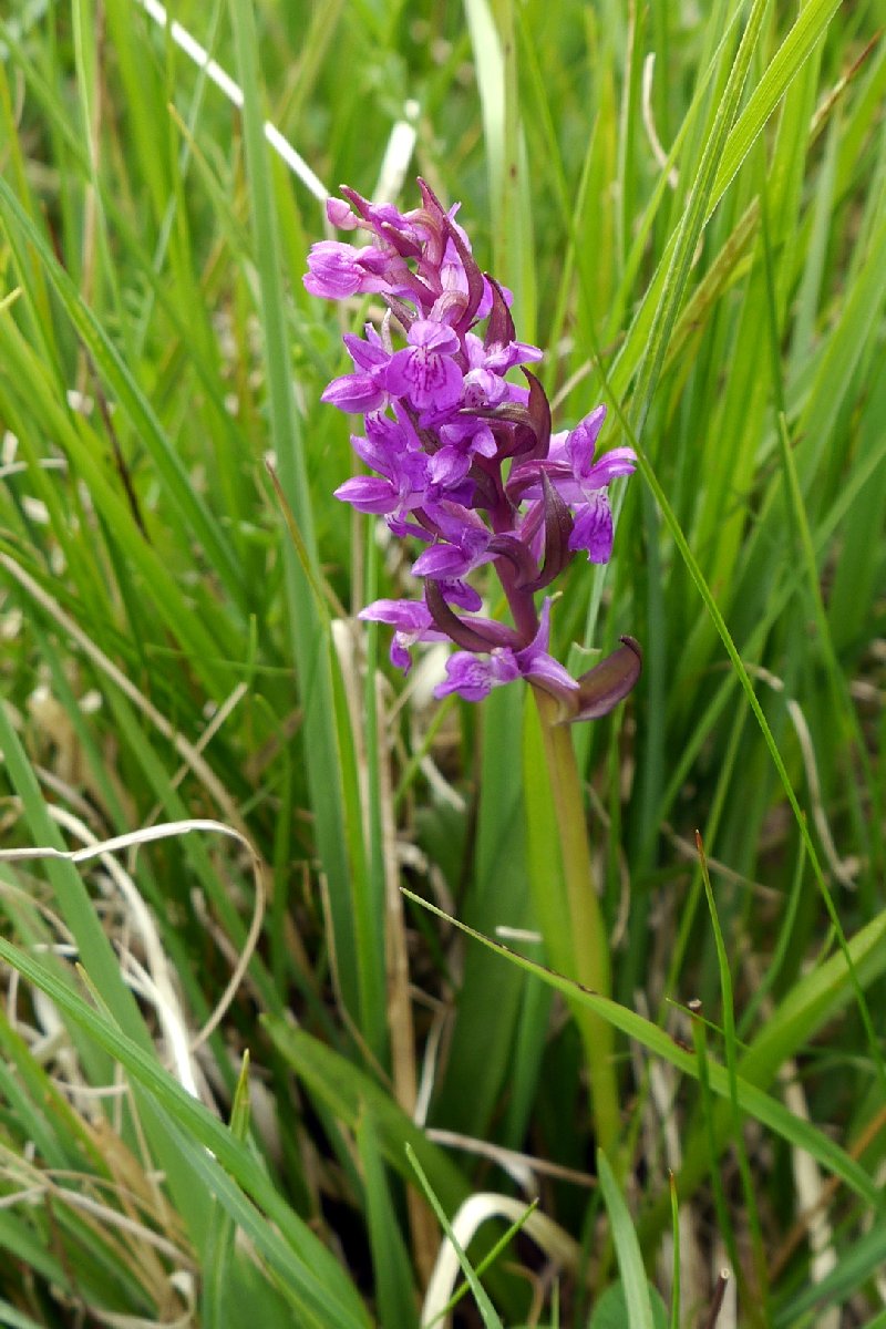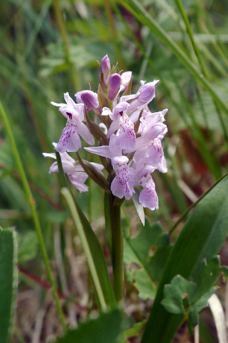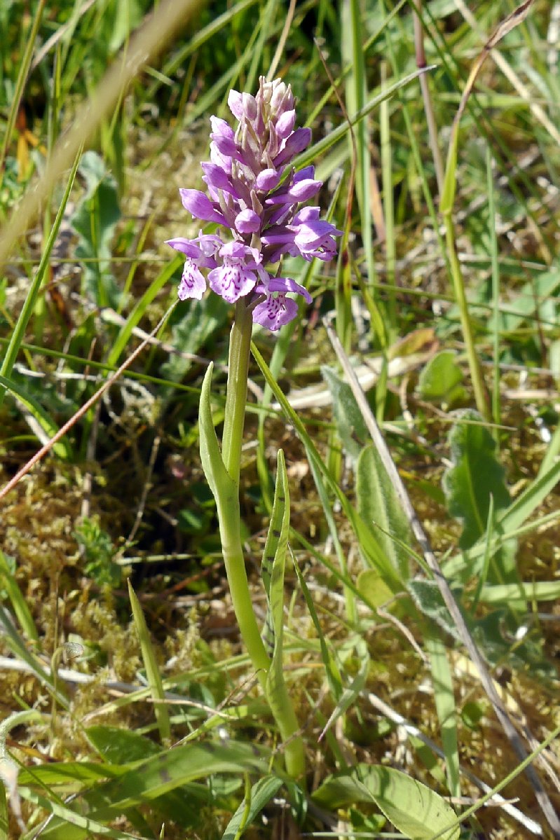 Now for the Narrow-leaved Marsh Orchids which are not the easiest to identify as any text book highlights the variation encountered. One has to go by the features that are consistent and which absent from the other marsh orchids: lip longer than wide, widest part of lip towards the tip, lateral petals held erect, wide throat, curved-over hood sepal. Not easy to spot all of these on one plant when sorting through photos later, so three of more of them satisfies me. I am pleased to see these because I do wonder if the different Narrow-leaved Marsh Orchids populations of Yorkshire, Scotland, Anglesey and Ireland (the southern English ones having been reclassifies as SMO var schoenophila) have arisen independently or at least been separate populations sufficiently long enough to be considered as different entities. I await reading the reassessment of this species by Bateman et al.