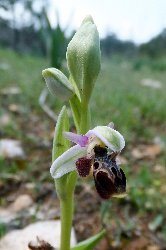 A visit to these ruins is well worth the time spent. It also gave a chance to look for orchids beside the track leading from the B6 road and along the nature walk heading towards the Stadium ruins. Nothing new seen growing here; in fact those we saw became know as the usual suspects. The Orchis syriaca were just starting to go over, and this is a reflection of the low altitude of the site of 120 metres, compared to Smygies 250 metres and Pegeira 360 metres, where they were in prime condition. Here the Ophrys flavomarginata were definitely past their best with the lip taking on a dull brown colour, while the Ophrys umbilcata and Ophrys galilaea were quite good. Orchids were quite sparse despite what I took to be a possible good place to look - see site photo. Elsewhere on the island we found that the large white asphodels were not a good indicator of the presence of orchids, but such sites couldn't be ruled out. All over the site were groups of densely packed rosettes that might be a late flowering orchid, but there does not seem to a be candidate species.