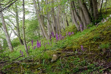 We have been here, on the top slopes of the hill and found it to be a large dog's toilet and no orchids. Only the first of those now applies for we did actually find one small forlorn group of Early Purple Orchids.
