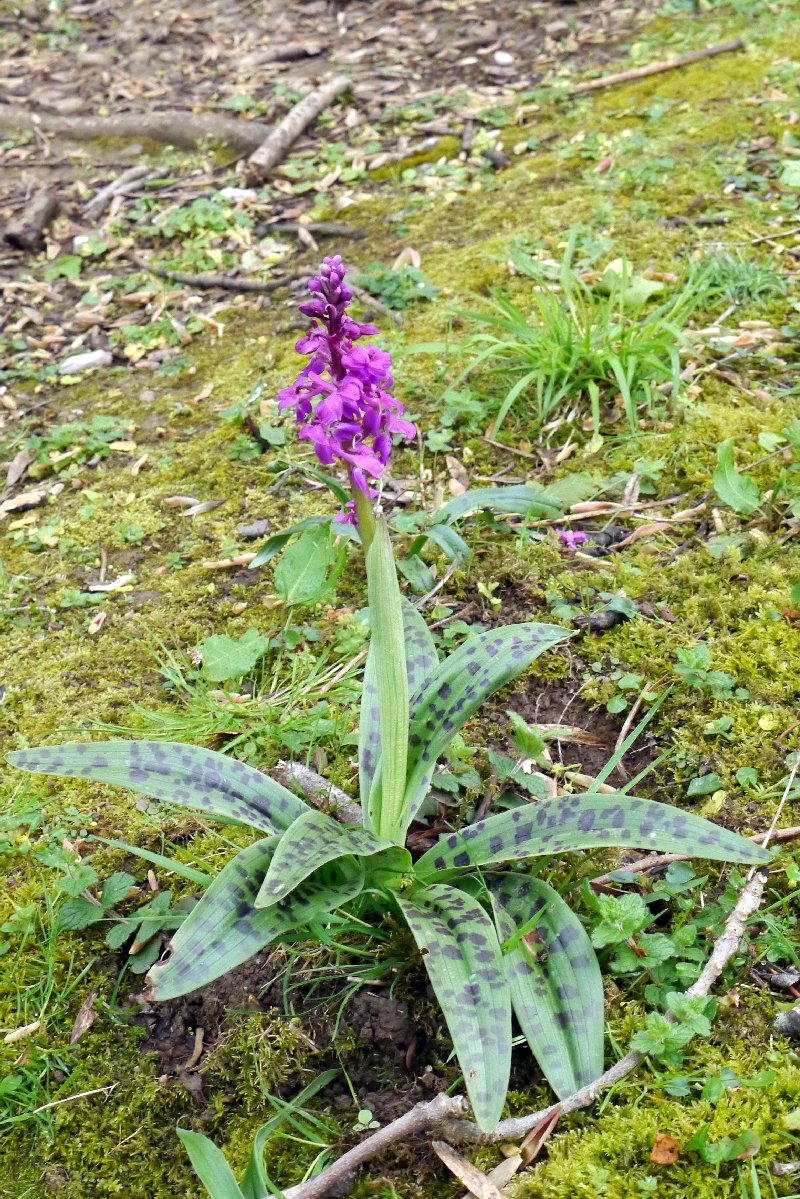 I was in two minds whether to publicly share the location of this site as it was one of the best displays of Early Purple Orchids I have seen. However, it is best that more can enjoy them. There must be around a thousand plants in flower in a small piece of unmanaged woodland next to the village road, and below a steep hill crowned, as usual, by an ancient hillfort. Whilst no albino forms are present there is a good variety of colour. One comment made on social media was "Thick on the ground there". That is certainly true.