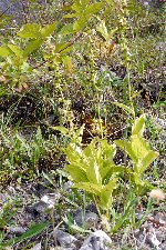 An earlier visit here would have been a real treat, but the Broad-leaved Helleborines growing beneath the rock face are virtually finished, and the seed pods are starting to swell. This area is quite an unusual habitat; basically waste crushed limestone acting as scree. There is no shade, and the ground does slope quite a bit. However, the text books do give a mention of such a habitat as being a suitable one. Here, though, the plants on the scree look quite different to those in the shade. The leaves are keeled and bright apple green, with the flowers quite pale. Under the trees the flowers are more pigmented while the leaves are flatter and a deeper green. Is this an eco-type phenomena, or has a certain clone been selected as being suitable for growing the open?