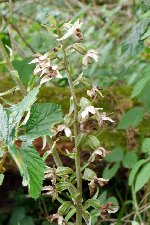 On a National Trust day out in Cheshire we come across a few Epipactis plants well past flowering and will ovaries swelling. Those at Hare Hill Gardens were growing along the path edge behind the walled garden, and at Alderley Edge they grew actually on the roadside as well in a bit of mixed woodland. The evidence points to them being Broad-leaved Helleborines. The habitat is typical, the stems are `hairy', and they are known to grow in the woods at nearby Alderley Park. Worth looking for if your are visiting at flowering time, but not worth a special visit - blink and you could miss `em!