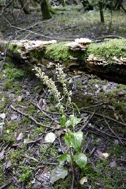 We walked alonmg this old mineral railway trackbed last autumn and spotted Broad-leaved Helleborines setting seed very nicely, and have come to see them in flower this year. I have decided to count this as a different site to Minera Quarry or Minera Lead Mines because of two reasons. Though the BLH may seem like a continuation between those sites there is a sizable break in the orchid populations either side, and there is a quite different habitat included as you will see. There were more Broad-leaved Helleborines here than I suspected from last year’s visit, and in a great spectrum of colours. One nice plant had variegated leaves with dark, rather than pale stripes. We decided to deviate off the main railway trackbed and found ourselves skirting what turns out to be an old spoil heap from the limeworks at the quarry. A railway siding took the waste to be dumped here and quite a hillock was formed. Here were Lesser Twayblades, the occasional Marsh Fragrant Orchid, and some Pyramidal Orchids still in flower, together with Common Spotted Orchids that weren`t. At an exposed bit of the spoil was a crack, and water seepage had the beginnings of stalactites forming. The top of the spoil heap was like another world - very mossy and with a woodland of stunted silver birch; very Lord of the Rings. Here the Pyramidals were pale, tall and vey leggy. What would interest many botanists was the sheer number of Yellow Bird`s Nest growing. Literally hundreds, but sadly mainly gone over. One other plant of interest was the Round-leaved Wintergreen. A quite remarkable site well worth a visit next year.