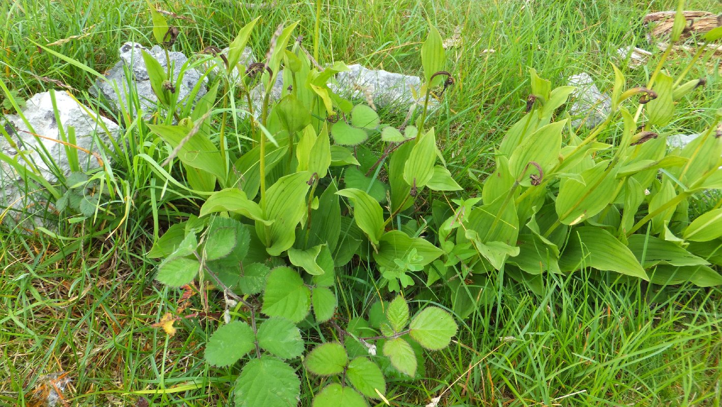 A short break based in Lancashire provides the opportunity for a couple of excursions. Top of the list is Gait Barrow. What a weird place! Following the paths you glimpse through the trees and see the white flat limestone pavements and it looks like it has been snowing there. We knew about the Lady Slippers Orchids there, but did not expect signs up saying This Way to the LSOs every 100 yards. Even so, the last couple of signs were missing from their posts and we carry on on our walk looking every which way, returning and taking another path and doing a full circle before we spotted them just where after where the signs had disappeared. Surprisingly we only met one other couple to talk to and they were unaware of the LSOs on the site. The orchids were well past their flowering period as expected (though I was hoping there may been just one late flower) but it did not look like seed had set. The plants were found in a fully open position about 20 foot off the main path, which explains why we missed them - TWICE. But the three clumps had been planted in lines, and had small rocks laid out around them making it look unnaturally like a flower bed. Still great work from those preserving this rare plant. A hunt for Dark Red Helleborines there proves fruitless. Still a return some time in the future perhaps, or on a date suitable for the LSOs, or with more information about the DRHs may be possible. The only other orchids spotted are of course Common Spotteds, down in a meadow below the limestone.