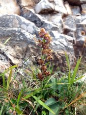 This year we decided to spend a bit more time on the Dark Reds. It had taken several visits before we actually saw any, as we were sidetracked into looking at the patches of Limestone pavement towards the northern tip of the Orme, before getting a tip-off as to where they grew on the roadside. But having reasoned that the roadside plants could have been seeded by a colony above, it seemed reasonable to look higher. The roadside plants grow beneath 200 foot of steep, terraced limestone the top levels of which are accessible from the summit. We made our way to a point directly above where we knew them to grow, and found more examples with ease. In total we found 25 flowering and 20 non-flowering plants along a 250 metre stretch of the highest terraces. Like down below, the plants seemed smaller to those seen in County Durham, and that the deficiency in the red pigment was evident too. The plant grew primarily at the back of a terrace where presumably they got a bit more rain retained. Some of the flowers were rabbit nibbled. Working on the population numbers and the areas covered at the top and the bottom of the cliffs simple arithmetic projects a possible total population of 1,000 plants at least. The non-flowering examples mean that there are more yet to come, and those lost will be replaced. Most these will be immune from trampling or grazing.