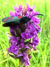 With nothing else found we follow the path into the centre of the dunes, and continue towards Prestatyn. We are met by hundreds of Northern Marsh Orchids. These are of classic appearance with deep purple flowers with bright magenta loops and dashes on the shield shaped lips. Mixed with them are sub-population of paler Dactyls, which are evidently earlier flowering; most are starting to go over. These seem to have Common Spotted Orchid colouration, but are clearly not xvenusta (the Northern Marsh x Common Spotted hybrid). For the time being these will have to remain a mystery! xlaterella (the Early Marsh x Northern Marsh hybrid) perhaps; that could explain the early flowering.