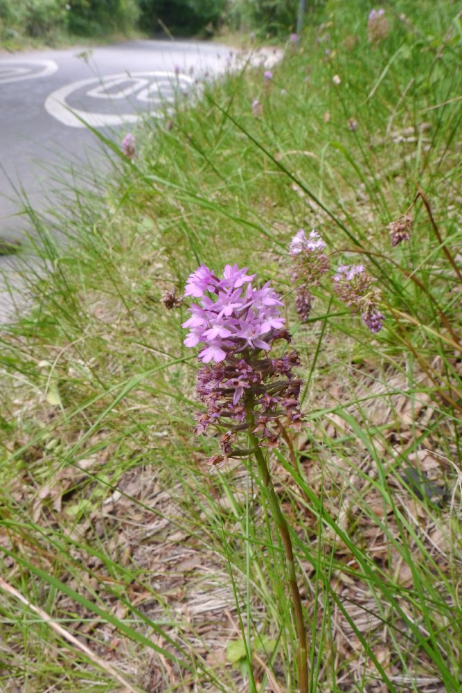 Okay, we have been here before, but in addition to the Bird's-nest Orchids there should be some Green-flowered and Broad-leaved Helleborines. The BNOs are all dried and brittle, and despite an hour walking old and new trails, covering several different habitats, we see no more orchids - oh, apart from the large group of Pyramidal Orchids at the car park entrance. How have we missed those before? Certain areas are undergoing coppicing to entice the butterflies, and it is working. Many Silver-washed Fritillaries flit about.