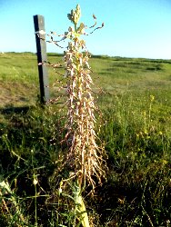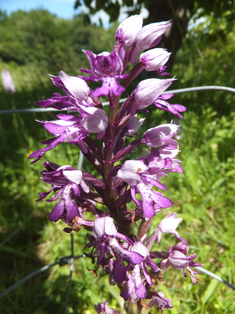 This is a (well) managed site, with a plethora of orchid species, but sadly with only a small lay-by to park on along very narrow lane. Obviously the aim of the visit was to see the Military Orchids here, one of the few places where these grow in Britain. We were not disappointed. There are several hundred, some fully grown, some smaller. Perhaps the only minus point was that most had wire cages around them; essential for protection from trampling especially before flowering, but the wire did intrude on many of the photos. The meadow has a number of criss-crossing tracks where it is safe to walk, and see all the orchids growing. We started in the meadow field bordering the road, and other species seen there included Common Twayblades, Common Spotted Orchids, some nice deep pink Pyramidal Orchids, and a solitary Greater Butterfly Orchid in the top corner. Speaking to a couple of other visitors who were just leaving we got information about some Bee Orchids and a Fly Orchid. But before we reached that area I noticed a solitary White Helleborine, which had finished flowering, and what is most likely a Green Flowered Helleborine, yet to flower. Without seeing it in flower the sub-species of vectensis can only be tentative, but this is most likely geographically. The Bee Orchids were scanty, and we couldn't find the Fly Orchid. We were told it grew under a big tree, but had been directed to the edge of a wood with too much choice of big trees.