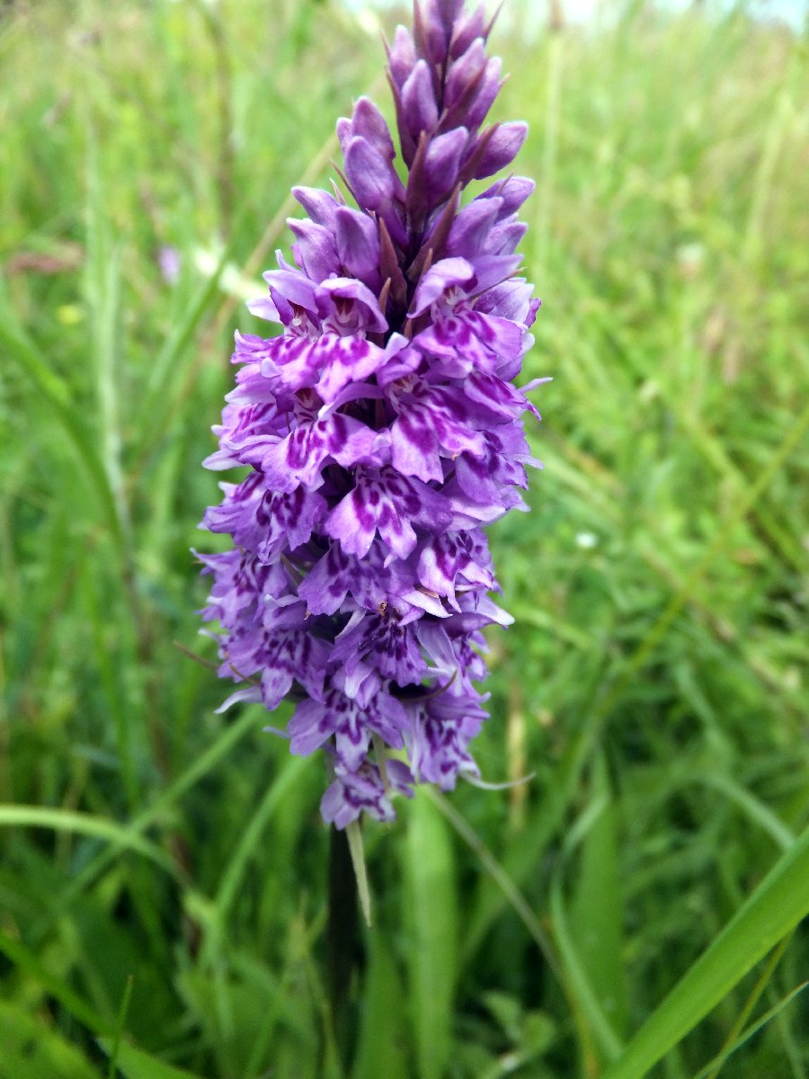 Roadside colonies of Common Spotted Orchids are quite common, when you look out for them. On the A55 North Wales Expressway there are several colonies. At the Flint junction on the west bound side, near Holywell golf course eastbound, at the top of Rhuallt hill both westbound side and central reservation, and between Pensarn and Old Colwyn near the quarry pier, again westbound side and many in the reservation. From the purple colouration, there may be some Northern Marsh Orchids too.