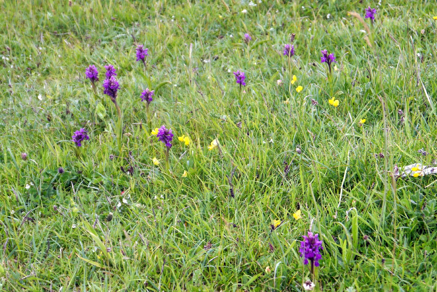A return here a little over two weeks earlier than last year to catch those orchids that were going over at the beginning of July. At the start of the walk it is all Pyramidal Orchids - a good year with hundreds here and there. Further on and its all Northern Marsh Orchids and again hundreds of them, mostly short plants in short turf. But there are some much taller examples in longer undergrowth. Their size even suggests hybrid origin, but otherwise they look typical Northern Marsh. There are very few of the Dactylorhiza hybrids that were fairly plentiful last year. Is this weather factors coming into play? Common Spotted Orchids are nearly absent. Large numbers of last year's seed heads can be seen, often with only leaves and no flower this year.