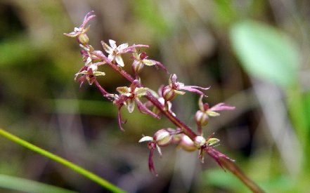 It is wellie time again, but not so much for underfoot as for making our way through wet heather and grasses and keeping jeans dry. This place has been hit and miss for me. No luck first time, jackpot second go, and just unflowering plants last time. So we have come a full month later and find some nice flowering Lesser Twayblades; not many but that is not a problem. Some are in the sphagnum under the heather directly below the layby, and others 200 yards towards the boundary stone growing in a similar habitat. They are just so hard to see. I look for the pair of small roundish leaves, but this year there is a species of violet with leaves of the same size, but just a bit darker green. That makes things that little bit harder.