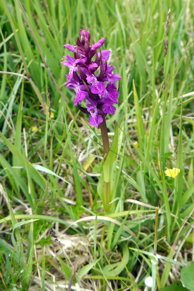 Now for the Narrow-leaved Marsh Orchids which are not the easiest to identify as any text book highlights the variation encountered. One has to go by the features that are consistent and which absent from the other marsh orchids: lip longer than wide, widest part of lip towards the tip, lateral petals held erect, wide throat, curved-over hood sepal. Not easy to spot all of these on one plant when sorting through photos later, so three of more of them satisfies me. I am pleased to see these because I do wonder if the different Narrow-leaved Marsh Orchids populations of Yorkshire, Scotland, Anglesey and Ireland (the southern English ones having been reclassifies as SMO var schoenophila) have arisen independently or at least been separate populations sufficiently long enough to be considered as different entities. I await reading the reassessment of this species by Bateman et al.