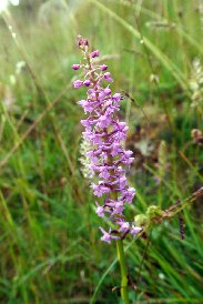 Looking at the OS maps for new places I spot where, just outside Llanarmon-yn-Ial, the Clwydian Way heads north alongside a working limestone quarry. This looks promising. At the outset, from the road, things are not promising, but soon there are spots with groups of Common Spotted Orchids and Early Purple Orchids now well gone over. however they must have looked great in their prime. Things get more orchidy as we come to the higher points. there are a few Common Twayblades, Pyramidal Orchids and even a diminutive pair of Frog Orchids. However it is the Marsh Fragrant Orchids that catch the eye. Dotted between CSOs, they come in a range of shades.