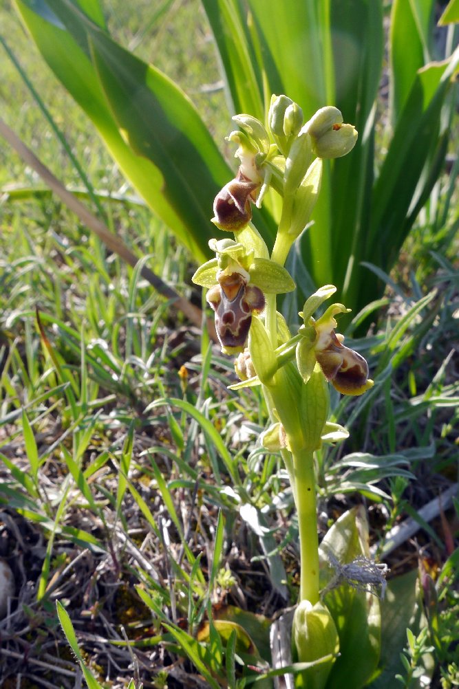 Two Ophrys lapetheca, a clump of Ophrys flavomarginata, and Ophrys kotschyi