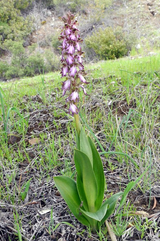 Leaving the 812 at Agyos Mamas (Patron Saint of tax avoidance!) we took a narrow un-numbered lane heading for Kato Chorio. Halfway along more Barlia robertsiana were spotted on a steeply terraced olive grove. These were a nice lilac shade and the size can be judged by comparing the size of the leaves and the grass. Again the altitude of 510 metres meant this species was still in full flower at this date. Sadly, a search around yielded nothing else
