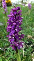 This is a bird reserve near Shrewsbury, and for me a new site with Green-winged Orchids. The site is a former boggy area re-landscaped into a wild fowl reserve, with the fields surrounding seeded to become hay meadows. So effectively not a natural habitat. The parent plants for this population came from Eades Meadow in Worcestershire, where the GWOs are not as short and stunted as these. It has been said that plant height may be governed by the richness and depth of the soil, but personally I think the surrounding vegetation plays a large part; these flowers need to be seen. There were a not overwhelming number of orchids.