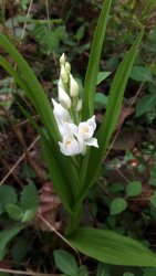 Visiting here at a similar date as 2014 was a bit of a gamble, as this year seems to be lagging a bit weatherwise. However, the Sword-leaved Helleborines were starting to flower. They didn't seem to be as obvious as last year, but we counted 26 on the left side of the track by the cattle grid. Perhaps the undergrowth made it more difficult this tear. Indeed there were two conservationists there, conducting a census, and seemingly in favour of some clearance work in the woods.