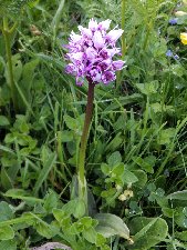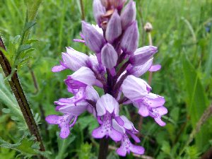 This is where I have my accident, but not until we are leaving. I have been here before, again later in the year, and several years ago. This time, not only does there seem to be more Monkey Orchids in flower, but they are in much better condition. I am sure that previously they only appeared in the second or middle field, but today they are everywhere, and that includes high up the slope and lower down. I gave up counting at 100. Harrap states that the Kentish Monkeys, compared to those from the Chilterns, are sturdier, have bigger leaves, and a richer colouration. Comparing to those from Hartslock, this does seem to be the case. Though the Park Gate population was seeded it was from the other Kent site near Faversham. My photos again show a more purple colour to the flowers than the more brownish-purple shown in Harrap. Meanwhile Summerhayes states that this species is unusual in that the topmost flowers open first. This does not seem to be the case either here or at Hartslock.