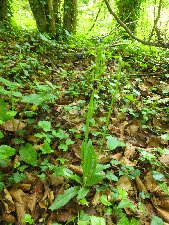There are also helleborines growing here and it seems that there are possibly three different species judging from the quite differing appearances of the leaves. Only one has a flower, and that is not open, but it is white - from the leaves I would go for White Helleborines. So could the other two be Broad-leaved Helleborines and Sword-leaved Helleborines?