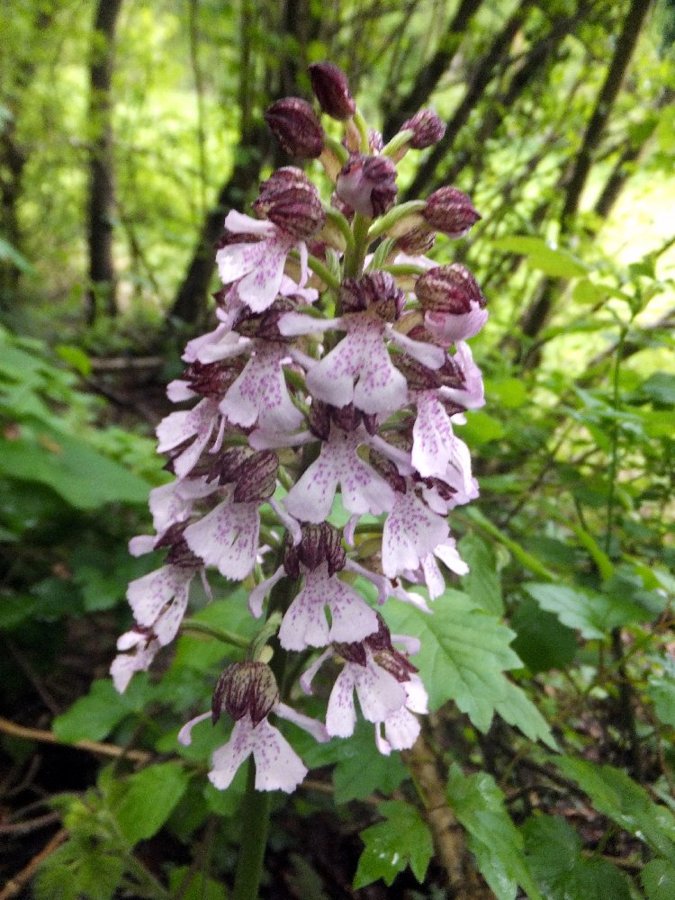 I was told before I left that Yockletts is a delight, and it is. While I didn’t feel that I could go too far with my injury, I really didn’t need to. From the road through the middle of the woodland and looking downhill I take the left hand side, and it is not long before, in a bit of a clearing, there are both Fly Orchids and Lady Orchids. The Lady Orchids catch the eye, but luckily we see the Fly Orchids before there are any accidents. So easy on a site like this with an delicate unobtrusive species in low light. More of both species are found further along the path along with more Early Purple Orchids and Common Twayblades. A quick check along the woodland path on the other side of the road found more Lady Orchids; these had very pale (almost missable) papillae on the labellum. There was no sign of the Greater Butterfly Orchids seen five years ago.