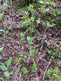 We have come here for the Bee Orchids, but the lack of rain has caused the ground to be extremely dry. We find none. Elsewhere in the wooded area things are better, with Common Twayblades coming on as well as Dune Helleborines. However compare these which flower earlier, to the Broad-leaved Helleborines at Minera from two weeks previously; they seem to be well behind. A bit of a disappointing visit!