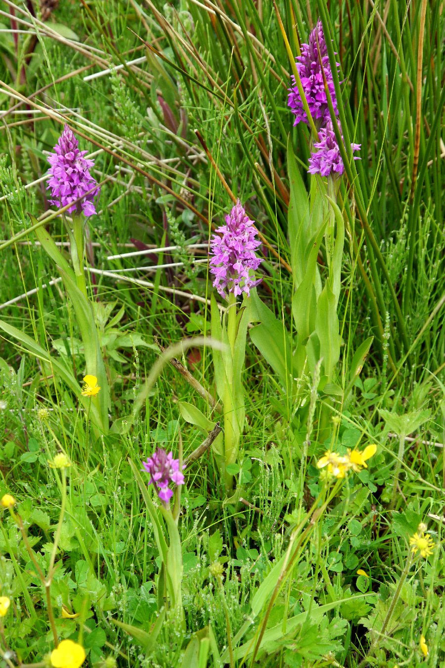 A nice display of the Southern Marsh Orchids here just a short flat walk from the parking, though the area does seem a little more overgrown than two years ago with rush and thistles prominent. The weather has been dry for a short while, but some of the flowers do seem a bit wilted already. They clearly like the ground to be wetter. I count some 200 spikes, including those yet to come. with 20 seen in 2016, 40 in 2017 and 100 in 2018 it does seem that this little colony is thriving, and increasing exponentially. Is it possible with a bit of arithmetic to suggest that the colony may have been founded in 2010 or 201? I would need to see when it was transformed from a landfill site. As in other years some of the plants have noticeably longer bracts than other; they are quite prominent.