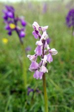 Okay, so we have been here for the past two years, but I cannot resist another visit to a site where accessibility is easy and a good show is likely to be seen. I am not disappointed. What I do notice this year is that the Early Purple Orchids have spread to the entrance side of the hillock in good numbers, and are prominent on the slope to the left as you enter. This does not affect Green-winged Orchid numbers either, and I can see many tastefully backgrounded by the blue of Spring Squill in flower. On the far side of the monument Cowslips have taken over!