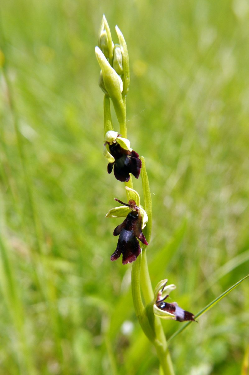 Who goes on a 210 mile round trip to visit a grass verge? An orchidiot of course, but it has to be worth it. I heard about these Fly Orchids and knew I had to visit. Well, the fact that it is right by the road meaning no ascents or 30 minute trek helps in the decision making process. Fly orchids are never that easy to spot, but eventually we see some 30 plants in flower. There may be more yet to flower. Those flowers in the fourth photo have rather pale margins to the lip, getting on towards Op. insectifers var. luteomarginata. there are also plenty if Common Twayblades here too, also not immediately obvious, and many in nice groups.
