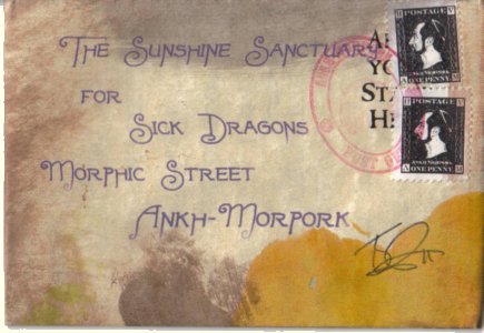 This stamp is a bit of a curio. A Penny Patrician printed by letterpress, a centuries old technique. According to the Wincanton news release in April 2005 – Recognisable because the paper is thinner (80 gsm) than the normal Penny’s , and the printing process is one we have never used before. The other difference is in the letters in the corner cartouches of the stamps, which bear the letters H-V & A-M The stamps have been produced on a very old Heidelberg letterpress. The letters or plate are clamped into a frame, a printing form supplies the ink before this is covered with the sheet and pressed on to produce a ready-printed sheet which can be reproduced indefinitely. It is an old and tried process, which gives the stamps a unique, slightly antique look. The plates are of zinc, and therefore do wear out quickly, so we are only doing the one print run. Of the 350 sheets (of 56 stamps) produced, 250 were made available to subscribers of the Stanley Howler Stamp Journal for 30.00 and came in a special acid free folder and with a individual numbered letter of authenticity. The remainder were perforated at Wincanton and split up to be released in LBEs. Unlike all the other Penny Patricians except the Enschede this stamp has a different paper and gum. It appears a bit yellower from the back and lacks the roughness of the gum. This process results in a very monochrome stamp, with only black ink being used. This result is certainly rather in keeping with Ankh-Morpork technology, but out of step with all the other stamps!. There is a sport of this stamp. One stamp per sheet has the V in the top left cartouche sloping to the right.