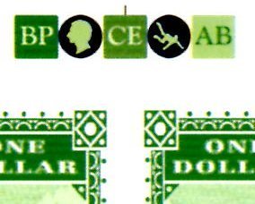 BP CE AB We are all familiar with the logo used on the early stamp sheets, incorporating the three initials separated by a Vetinari head and another small image. On these sheets the small image is the Falling Man, but is he always falling? I have heard stories of this moving and there has been a publicized instance of the Man rotated 180 degrees. Are there other examples where he faces left or right?