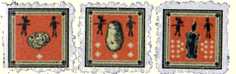 Spoiler Alert: Readers of The Amazing Maurice will know that at the end of the story the sentient rats came to an agreement with the human citizens of Bad Blintz. They would have equal status within the town, with road signs and similar written in rat pictograms. Unsurprisingly the rats also had a postal service with their own small stamps. with perforations nibbled by their own incisors. Do not confuse these rat-nibbled stamps with the so-called rat-nibbled Bath perforated Year of the Prawn Ankh-Morpork definitives; quite different. The stamps came in three values - 1 represented by a raisin, 2 by a potato, and 20 by a candle. By far they are the smallest Discworld stamps measuring only 10 mm square. The two rat stamp issues coincided with the Bad Blintz issues. The first, red, set were limited to just 80 of each value, and were found in 1 in 15 of the Spring Fate LBEs. They were printed in sheets of 315 stamps! 15 columns and 21 rows, with the three values alternating down the sheet. One sheet, successfully perforated and disassembled, would provide more stamps than required for the 80 sets issued.