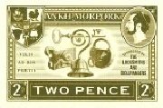 There were at least three other designs, values and sponsors considered for the issue. These were a 2p Locksmiths and Bellhangers, a 6p Auctioneers and Valuers, and a 9p from The Brass Workers.