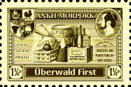 The first general stamp issue from Überwald was during the Year of the Happy Goose, and it also councided with the Seventh UK Discworld Convention for which the theme of the stamp continued.